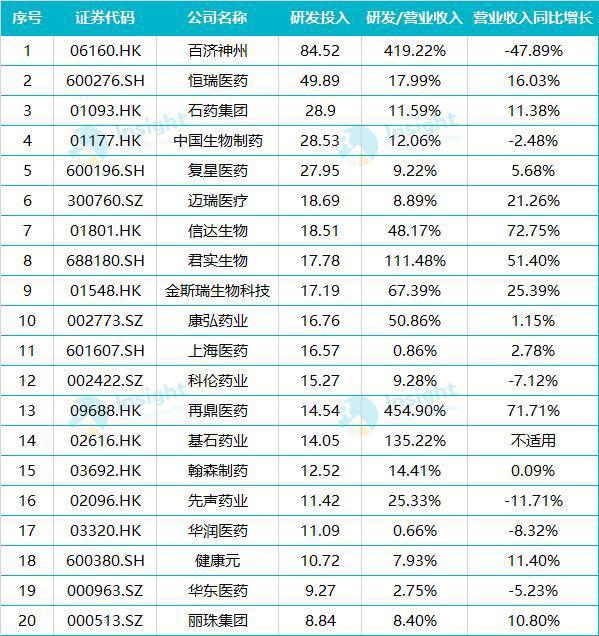 7月19日,Insight數據庫統計發布了2020年研發投入TOP20國內藥企。
