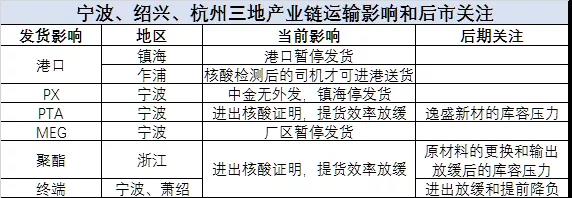 浙江防控升級(jí)的地區(qū)多為化工集中區(qū)域,匯集紡織原料生產(chǎn)、下游聚酯消費(fèi)、包括芳烴產(chǎn)業(yè)、聚烯烴產(chǎn)業(yè)、還有危化品生產(chǎn)等。其中,鎮(zhèn)海地區(qū)作為國(guó)內(nèi)重要的石化基地,其管控升級(jí)對(duì)部分化工品的影響巨大。