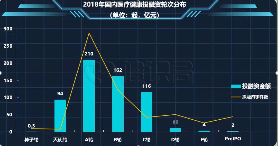 在融資階段上,2018年的融資普遍集中在較為前期的A輪和B輪中。資本推動(dòng)下,不少新興的生物醫(yī)藥類企業(yè)項(xiàng)目加速孕育。