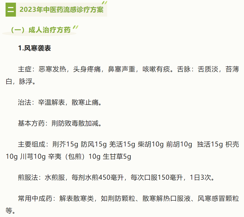 陜西省2023年流感中醫(yī)藥防治方案(試行) 陜西省2023年成人流感中醫(yī)藥治療方案(試行)