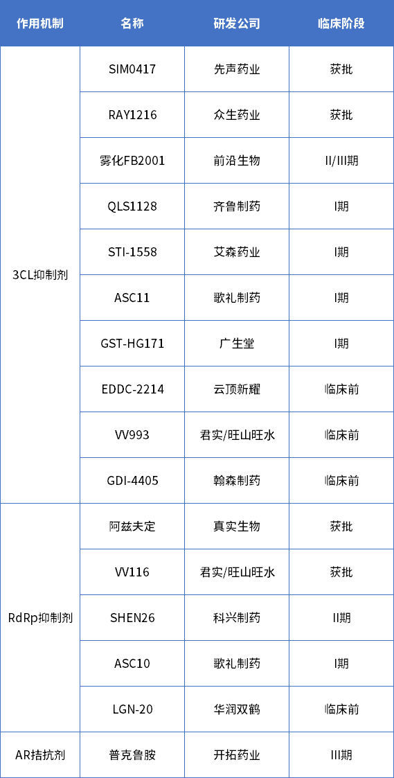 目前,國內已上市新冠口服藥形成“4(國產)+2(進口)”格局,阿茲夫定片、先諾欣(SIMO417)、民得維(VV116)、樂睿靈(RAY1216)為國產新冠口服藥,Paxlovid、莫諾拉韋膠囊為進口新冠口服藥。