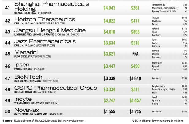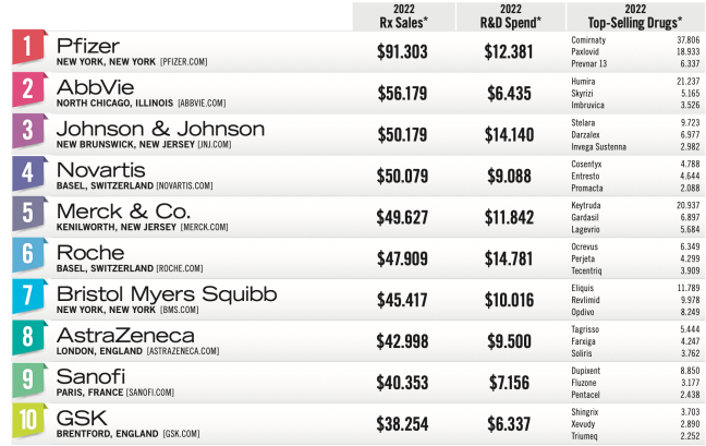 近日,EvaluatePharma發(fā)布2023年全球制藥50強排名,其中輝瑞以913億美元位居榜首,中國有四家藥企上榜。