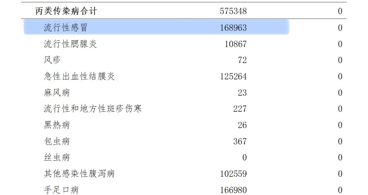 10月23日,國家疾控局最新發布的2023年9月全國法定傳染病疫情概況顯示,流行性感冒是丙類傳染病中發病數最高的病種。