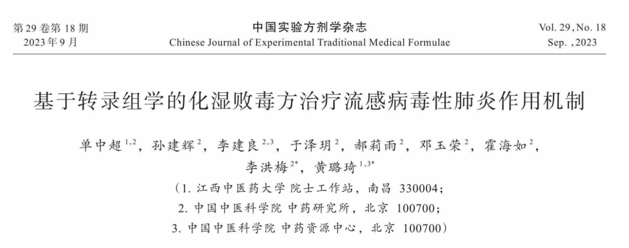 其中,麻杏石甘湯是《傷寒論》經典方劑之一,清宣肺熱第一方,其功效為清熱、宣肺、透表開閉。而霍香正氣散源于宋代《太平惠民和劑局方》,被歷代醫家稱為:祛濕圣藥,距今已有一千多年歷,是治療胃腸型感冒的經典方劑。為何突出胃腸型?因為西醫的胃腸型感冒,對應了中醫感冒證型中的暑濕證或濕熱證,藿香正氣散正是中醫中常用來對付濕邪的重要組方。另外,達原飲也是對付濕邪的一員大將,主治“溫疫初起,瘧疾”,以濕邪致病為主。清朝吳瑭《溫病條辨》的“宣白承氣湯”,則采用宣肺通腑法治療呼吸系統疾病。該方苦、辛并重,寒、溫并用,藥物主要作用于肺、脾、胃三經,體現出該方顧護脾胃正氣、解表與清里并重的特點。既要解表祛邪、和中化濕,又要顧護脾胃、扶正托邪,防止邪氣入里傳變,為“截斷之法”。整個方子既能驅邪,又能顧護正氣,不至于驅邪太過導致正氣不足。正是方義的寒溫并用,大大拓寬了化濕敗毒顆粒的適用范圍。化濕敗毒顆粒可改善流感患者的發熱、咳嗽、乏力、肌肉酸痛、咽干咽痛、食欲減退等癥狀,適用于老人、兒童及伴有基礎疾病等流感高危人群。今年9月發表于《中國實驗方劑學雜志》的一項題為《基于轉錄組學的化濕敗毒方治療流感病毒性肺炎作用機制》的研究也顯示,化濕敗毒方對流感病毒性肺炎具有治療作用。